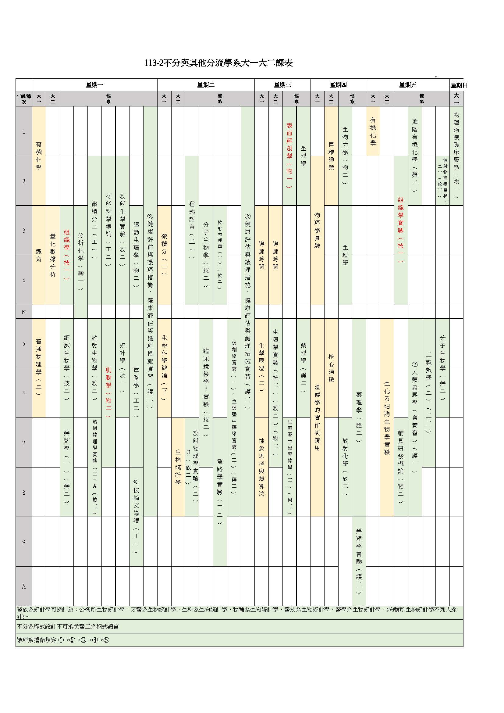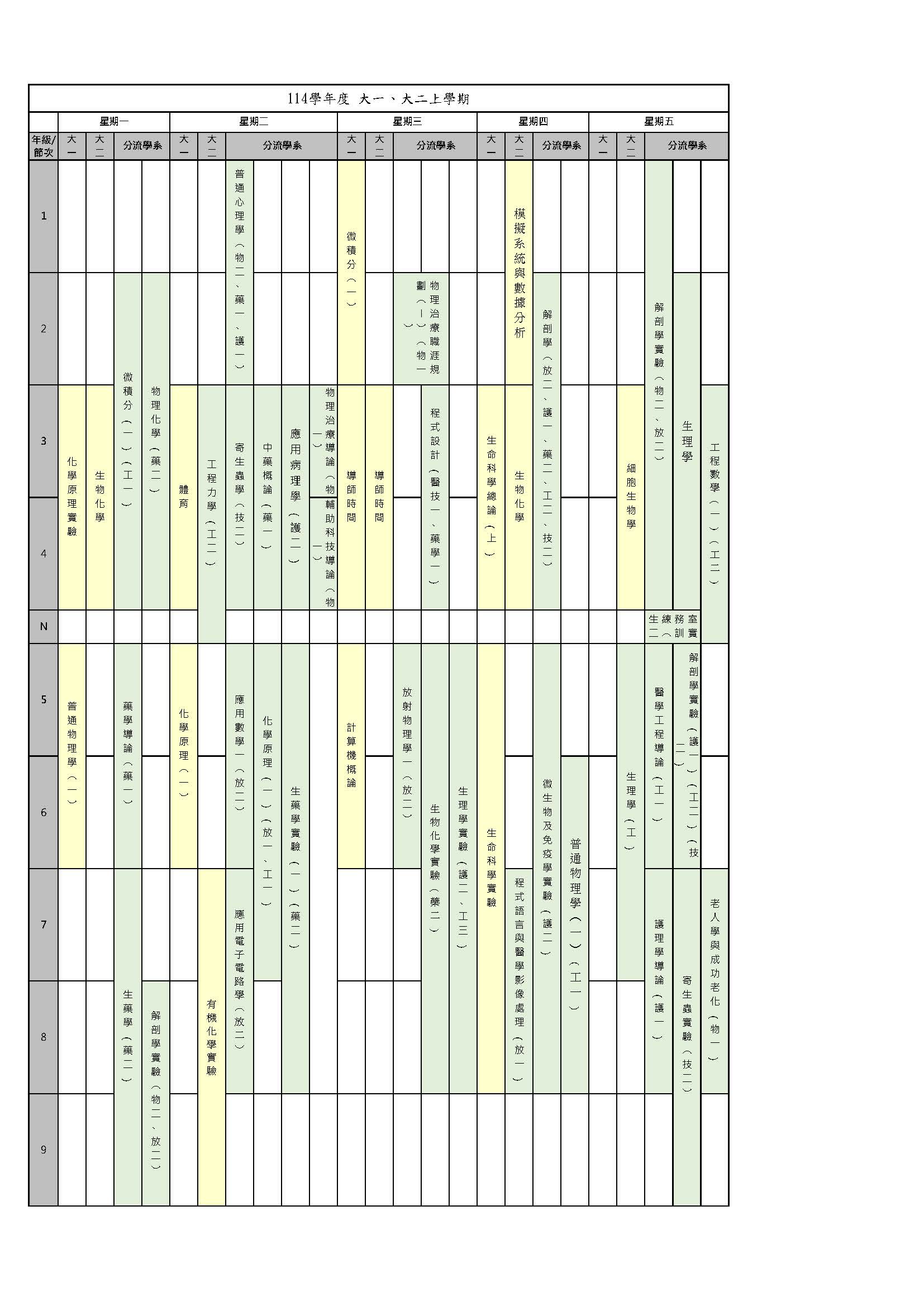 114學年度不分系必修課表/空堂時可加修之他系必修課一覽表